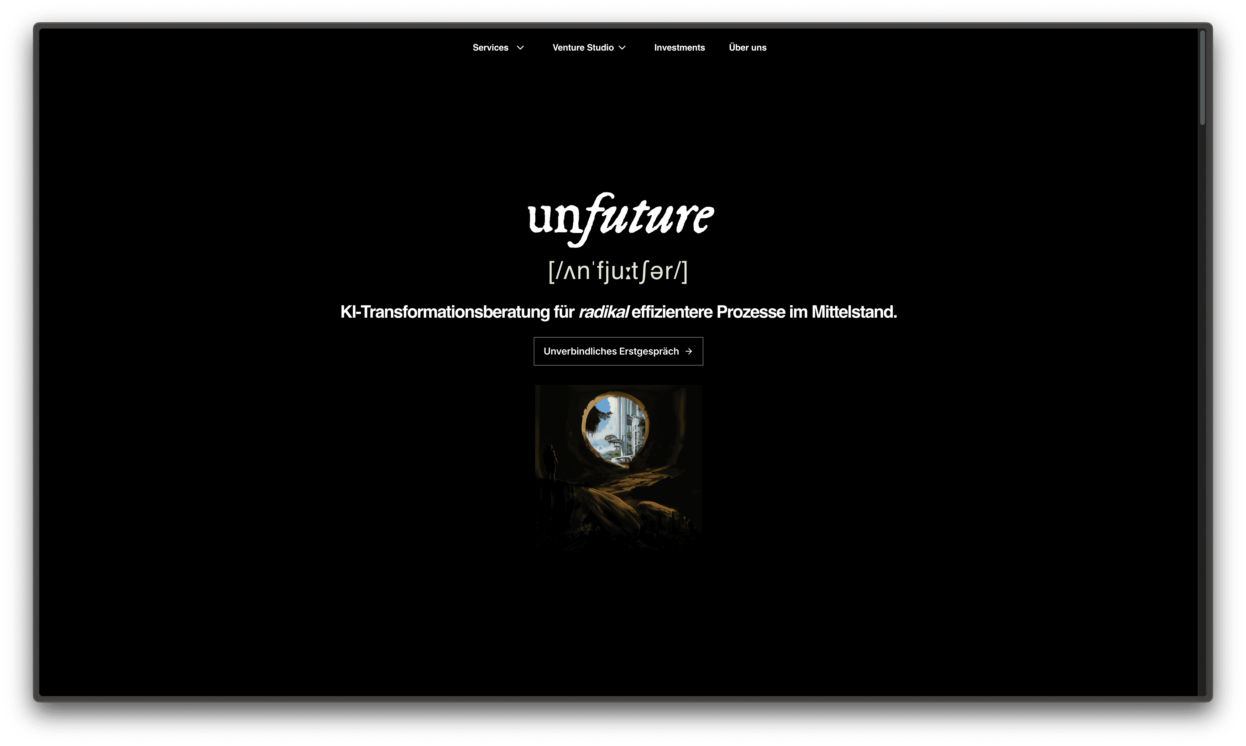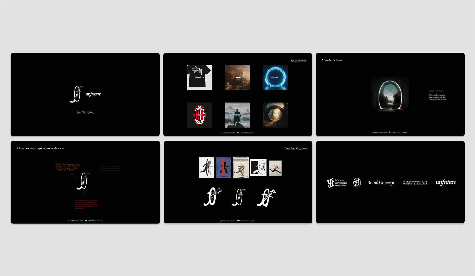 A new brand design for unfuture. An AI consultancy bringing companies into the future.